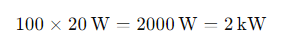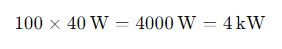 업그레이드하기 전에 건물은 100 개의 형광등을 사용하여 각각 40 와트를 소비했습니다. 이 조명의 총 전력 소비는 다음과 같습니다.