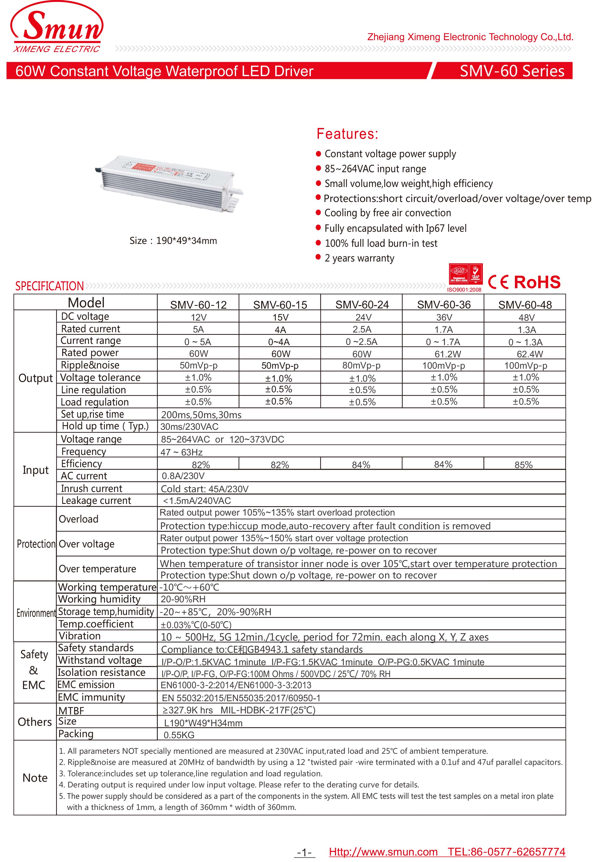 SMV-50은 50W 산업용 AC/DC 전원 공급 장치로 고습, 먼지, 기름, 고진동의 열악한 환경에서 작동하는 데 탁월한 성능을 제공합니다. 전체 시리즈는 알루미늄 케이스와 함께 제공되며 청력 전도성 실리콘으로 완전히 채워져 있습니다. 최첨단 설계 덕분에 최대 85%의 작업 효율을 제공하여 SMV-50은 자유 공기 대류 하에서 -10℃와 +60℃ 사이에서 완벽하게 작동합니다. 금속 하우징 및 IP67/IP65 침투 보호 수준의 설계 이 시리즈는 실내 및 실외 애플리케이션에 모두 적합합니다.